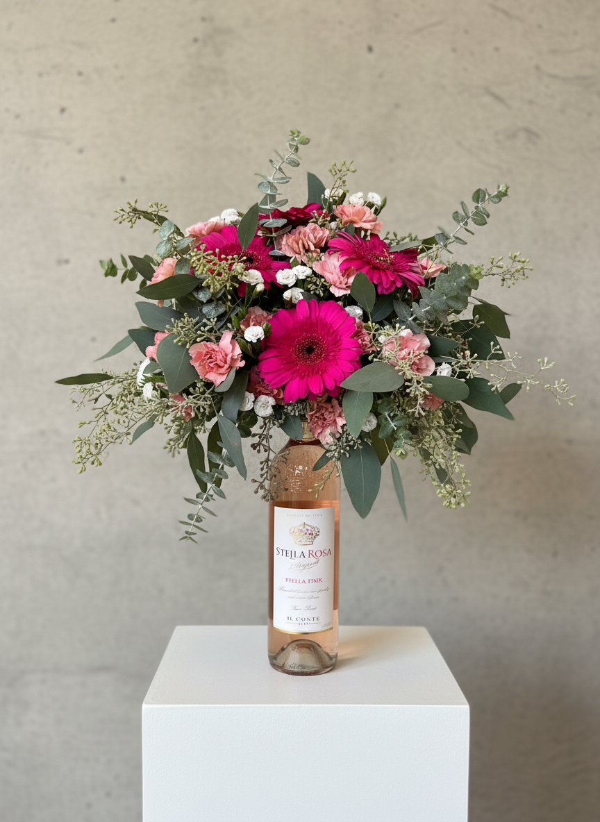 Our wine bottle arrangements are perfect for Mother’s Day, birthdays, anniversaries and more. You choose the bottle we do the rest, each arrangement is handcrafted with seasonal blooms to complement the aesthetic of wine bottle chosen.